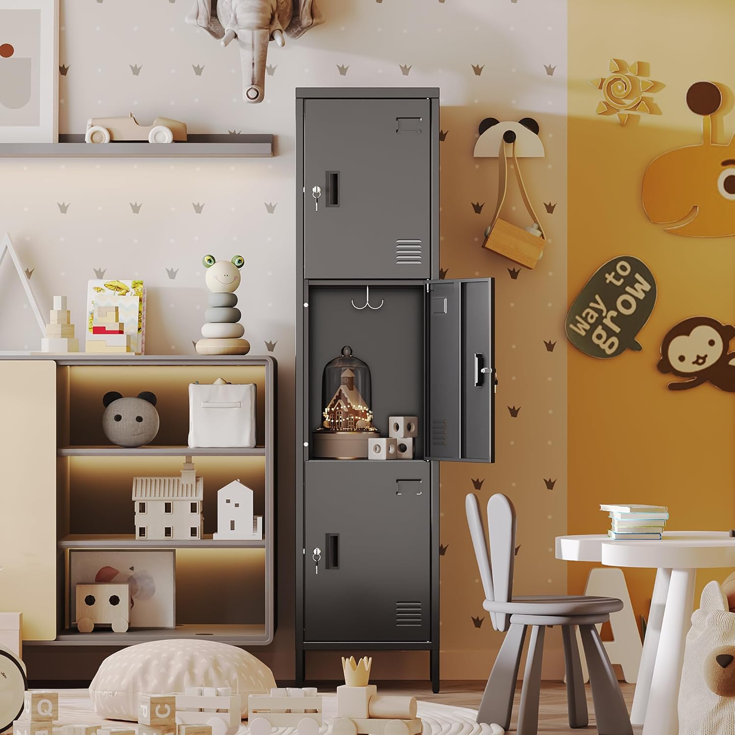 - 【Sturdy and Higher Quality】Steel material is made into metal storage cabinets,powder coating process makes storage cabinet Sturdy and higher quality.