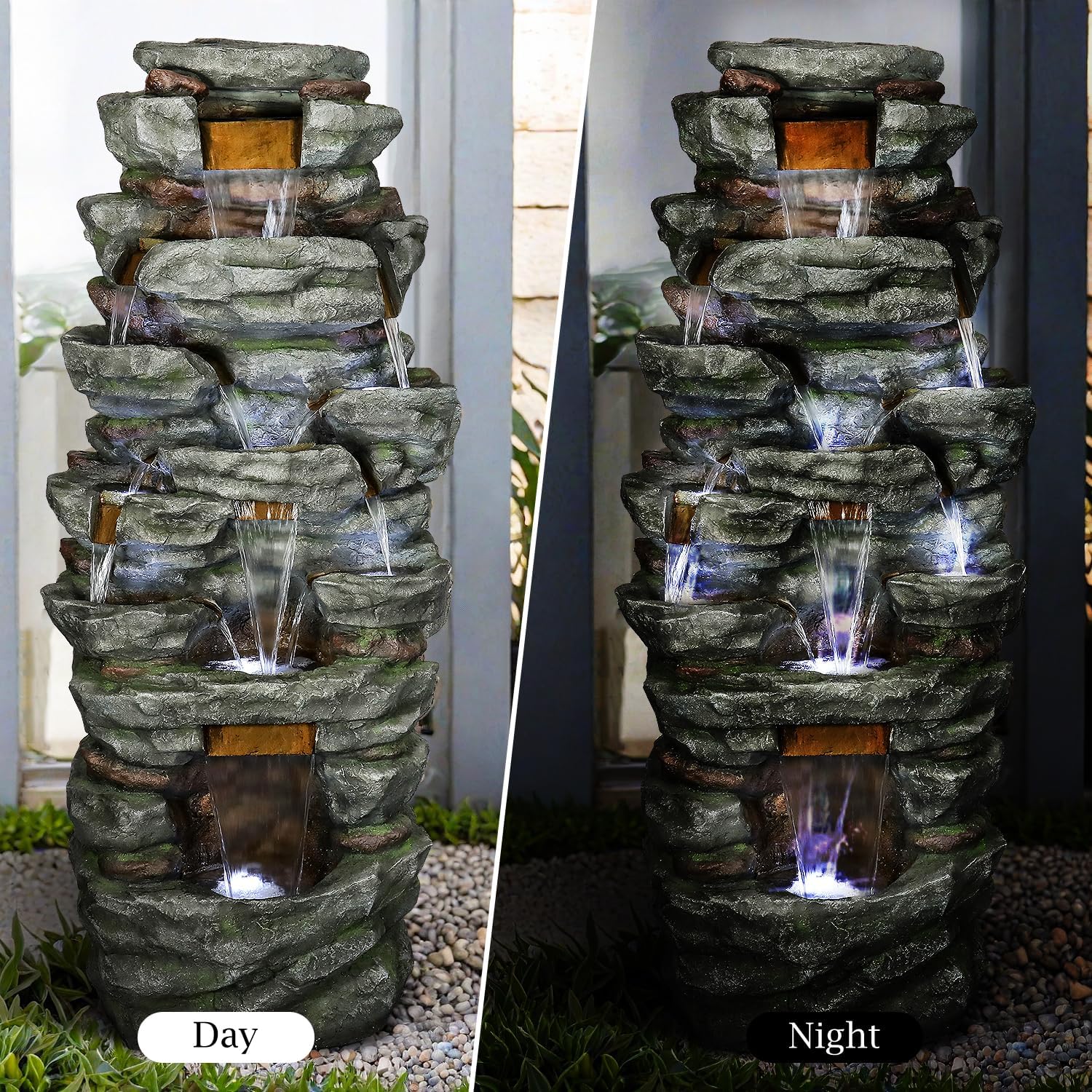 - Weather-resistant Waterfall Fountain Outdoor: Crafted from resin with a rock look, our outdoor garden water fountain is weatherproof, rust-resistant, and resilient. Enjoy a rich artistic touch in your outdoor space.