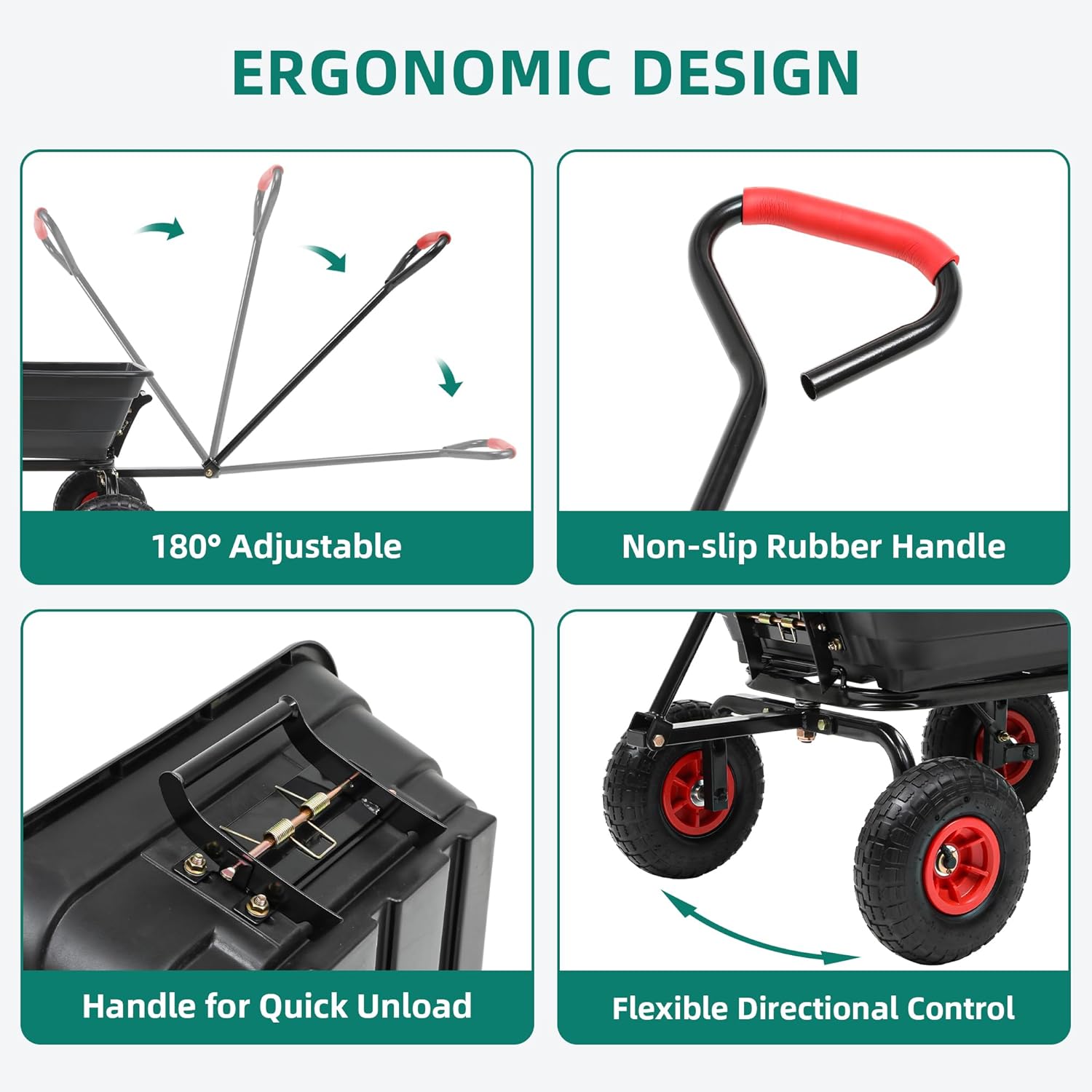 - [Quick-Release Dumpling System]: Our garden dump cart features a unique quick-release system activated by the front-handle dumping frame; Simply pull the pin to disassemble the bottom frame—no heavy lifting or awkward balancing required. Get the job done faster and save your back.
