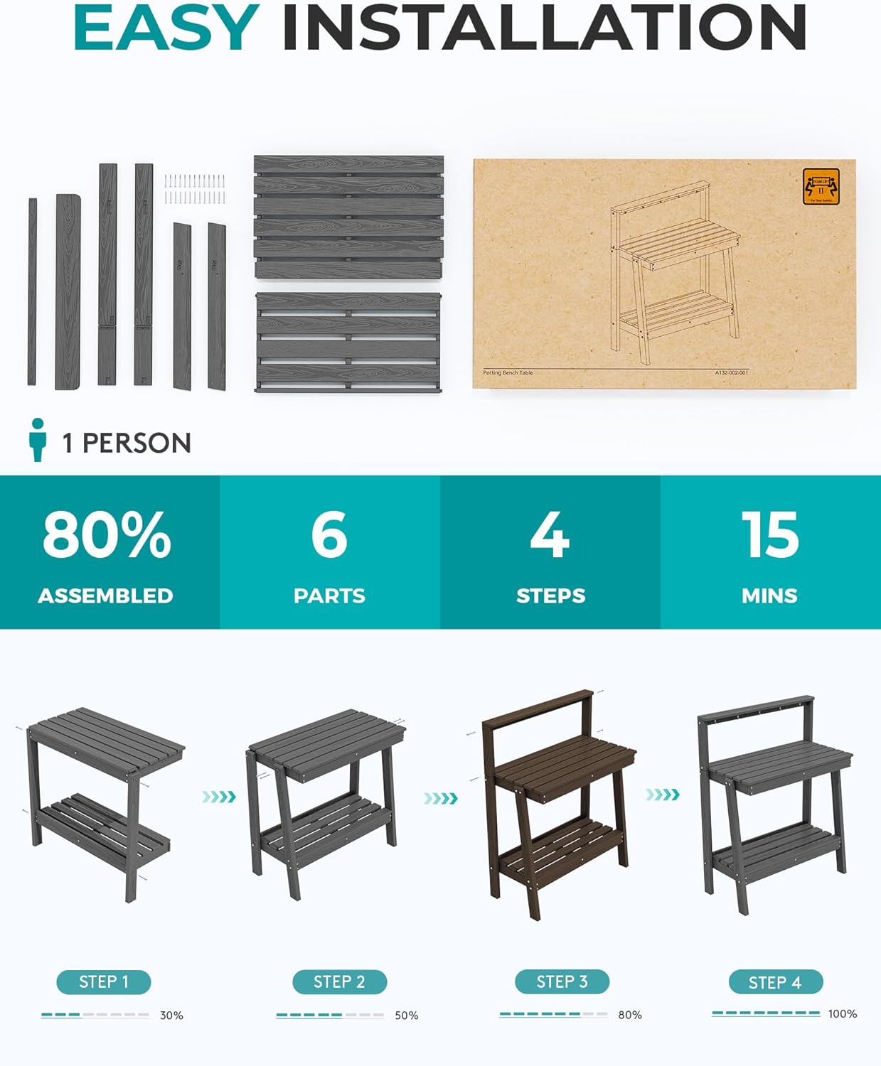 - Quick & Tool-Free Assembly: Everything you need for setup comes in the box. Just follow the straightforward instructions, and you can have your new garden work bench fully assembled and ready to use in under 20 minutes—no extra tools required.