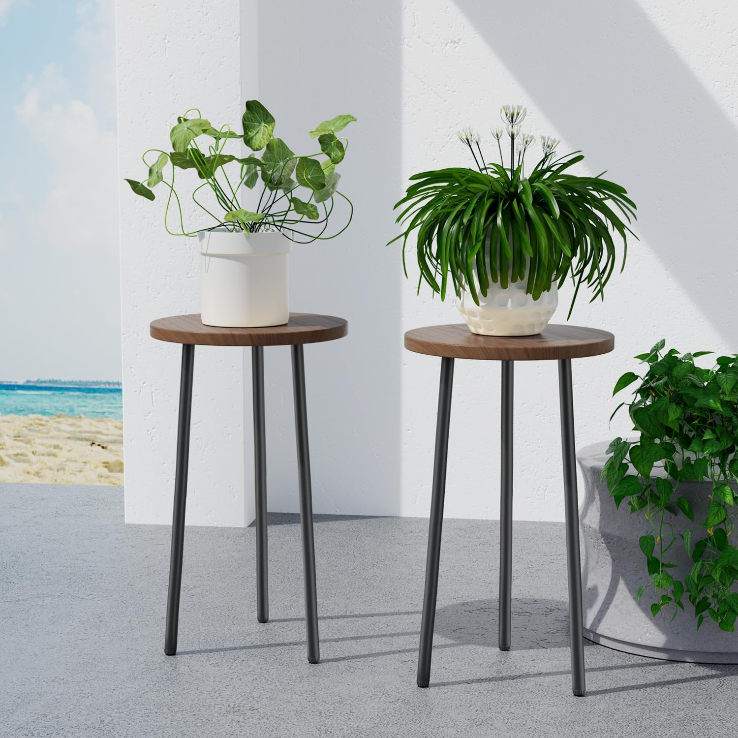 Plant Stand Indoor Outdoor: 2 Pack Indoor Plant Stand 20'' Convertible Multi-purpose Holder - Mid Century Modern Decor - Tall Plant Table for Living Room/Balcony/Garden/Patio, Walnut